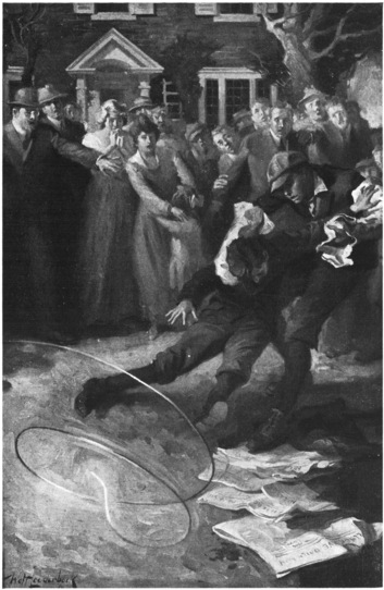 Eyes wide and face a little white, he tore across the road, splashing through puddles and slipping in the soft mud. Whirling around the corner into Pine Street, he saw a woman rush bareheaded out of a near-by house and two men come running down an adjacent alley. Rather, he noted them with that odd sense of observation which works intuitively, for his whole being was concentrated on the sight of that slight, boyish figure lying motionless in the roadway.