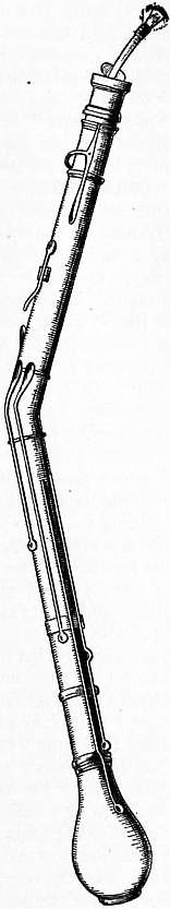 The origin of the name of the instrument is also a matter of conjecture. Two theories exist—one that cor anglais is a corruption of cor anglé, a name given on account of the angular bend of the early specimens. In that case the name, but not necessarily the instrument, probably originated in France early in the 18th century, for Gluck scored for two cors anglais in his Italian version of Alceste played in Vienna in 1767. When a French version of this opera was given in Paris two years later, the cor anglais, not being known or available there, was replaced by oboes. It was not until 1808 that the cor anglais was heard at the Paris Opera, when it was played by the oboist Vogt in Catel’s Alexandre chez Apelle. This, however, proves only that the name was not familiar in France, where the oboe of the same pitch was called haute-contre de hautbois. The bending of the tube and the development of the cor anglais as solo instrument originated in Germany, unless the oboe da caccia was identical with the cor anglais, in which case Italy would be the country of origin. Thomas Stanesby, junior, made an oboe da caccia in 1740 of straight pattern in four pieces, having a bent metal crook for the insertion of the reed and two saddle keys; but the bell was like the bell of the oboe, not globular like that of the cor anglais, a form to which the veiled quality of its timbre is due. It is interesting in this connexion to recall some experiments in bending the cor anglais, which do not appear to have led to any practical result. A French broadside (c. 1650), “La Musique,” preserved in the British Museum, contains drawings of many musical instruments in use in the 17th century; among them are an oboe with keys in a perforated case, and two other wood wind instruments of the same family, which may be taken to represent attempts to dispose of the inconvenient length of the haute-contre (1) by bending the tube at right angles for about one quarter of its length from the mouthpiece, which contains a large double reed, (2) by bending the tube in the elongated “S” shape of the corno torto or bass Zinke, for which the drawing in question might be mistaken but for the bent crook inserted in the end for the reception of the reed, which, however, is missing. The other hypothesis is that when the cor anglais was given a bend in order to facilitate the handling, the name was adopted to mark its resemblance to a kind of hunting-horn said to be in use in England at the time. This suggestion does not seem to be a happy one; for if the reference be to the crescent-shaped horn, that instrument was in use in all countries at various periods before the 17th century, while if it be to the angular form, then a reproduction of such a horn should be forthcoming to support the statement.