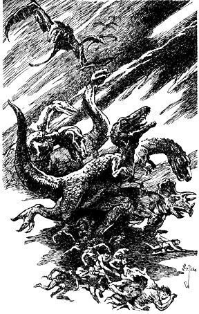 "There aren't any tame dragons!" the youth said scornfully. He was looking again at the sea. "There's a snake!" he yelled. "A huge snake! It's got its head out of the water—"