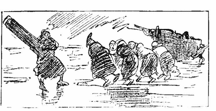 The end is approaching: for the first time I notice some of the bolder Revellers begin to smile. At length re-enter the Giants, Great Grandfather Christmas & Co., and the Indians. They rescue Columbine from the fountain. Now I think I see the plot. I mention this to neighbour, triumphantly; but he says I mustn't talk while Royalty is leaving, as Elizabeth wouldn't like it. So we join in "God Save the Queen!" and it's all over. Exeunt omnes. Must get a book.