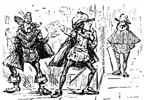 Enter "Silenus and his Crew." I hear some one say this. Not a bit like a crew. Not a sailor among them. Perhaps as this is a Mask, they are sailors in disguise. Silenus is, of course, supposed to be intoxicated. If he is intended to represent an ugly old man, dismally drunk, and making painful efforts to catch a note, he succeeds, to the life. Not funny, but clever. Splendid pantomimic property in the shape of a gigantic tobacco-pipe, carried by an Indian. My neighbour says, "Old Elizabeth would have liked all this sort of thing." Poor dear! I pity her, I ask if Indian is to be taken as an advertisement for the Wild West? Neighbour replies, hesitatingly, that he knows the book has been altered from what it was three hundred years ago to suit the present time, so that perhaps I may be right. The cracked piano, which is having a hard day of it, breaks out into a lively measure. Red Shirt, Silenus, "and his crew" join in a dance, "Crew Junction"—but why not a hornpipe, if they're a crew?—and the Curtain descends on Part the First.