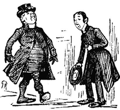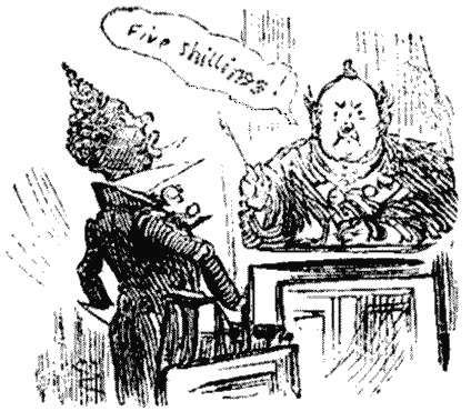 Ah, Mr. Story tells us a story as I've offen witnessed, when a young swell stands treat to a few frends and then ain't got enuff money to pay the bill! Wot a nuisance for him, but still wuss for the Landlord, and wussest of all for the pore Waiter. Poor Mr. Grossmith looks werry much paler than when I saw him after a jolly dinner at the Mettropole. I thinks as a glass or two of old Port would do him all the good in the world.