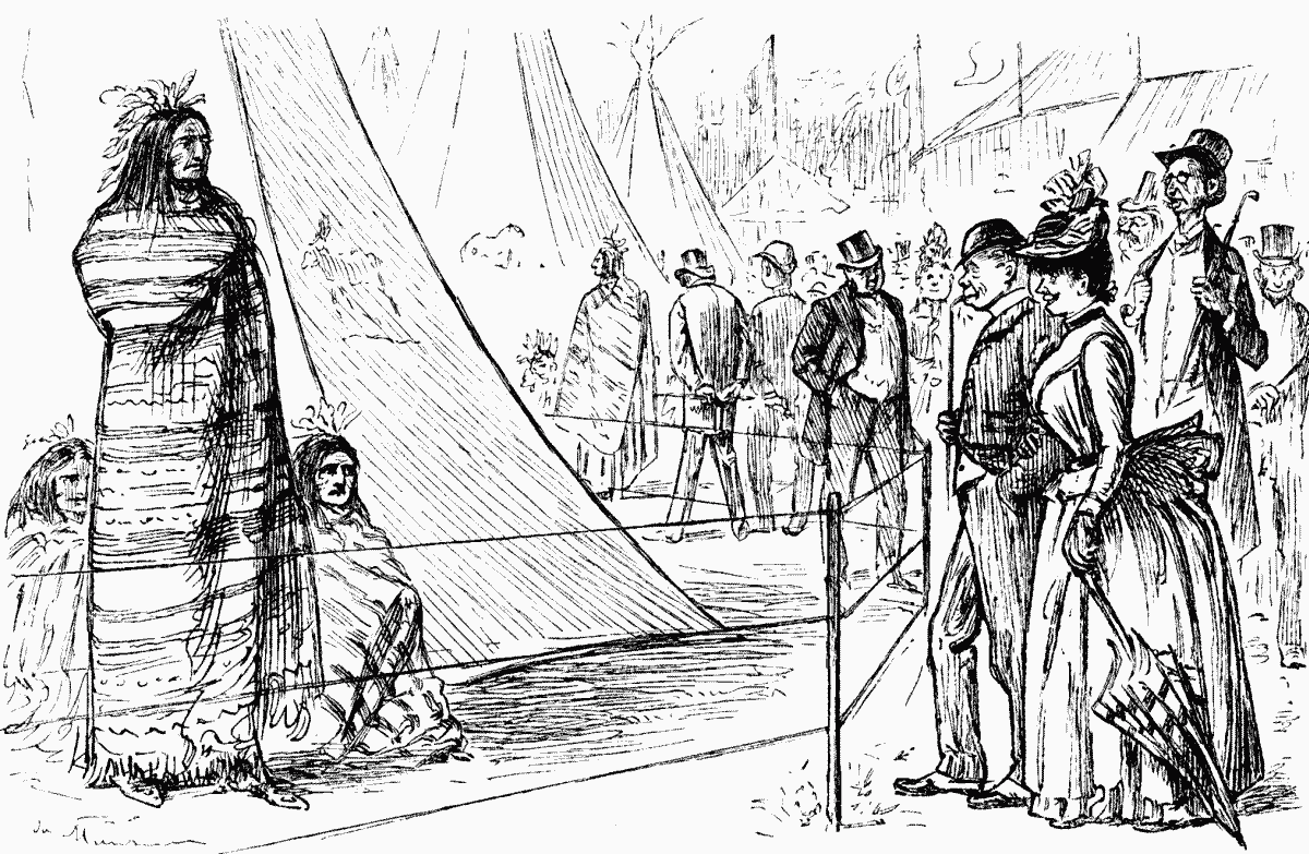 I don't think it's because "familyaryty breeds content," as the poet says, that I am less staggered than last year, but becos there ain't so many staggerers to be staggered at. Not that there ain't none. Why, there's one lady in the werry same dishabil as Madame Wenus herself a poring out somethink that the Catalog says is a incantashun, but then her pecooliar costoom is reelly xcusable, for she's that red hot that wood excuse anythink or nothink, as in her case.