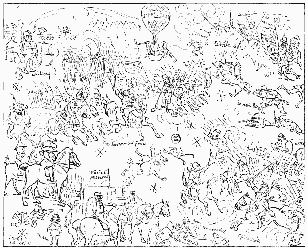 Lord R. Ch-rch-ll (hastily). Ah, well; then we'll shelve that subject too for the present. Wouldn't you—er—like—er—to go into the Lords, and lead them?