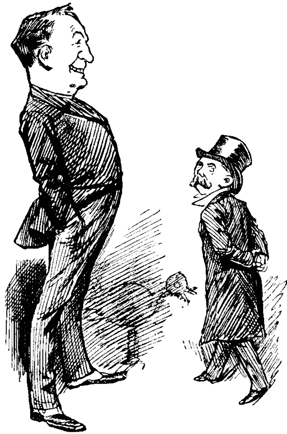 In the next rooms its the great Cardinal Manning, who ewerybody loves and respects, Waiters and all, though it does rather try our loyalty to see him at dinner, when he don't eat enuff wittles to fatten a church mouse. If I'd ha' bin Sir Edward Watkin, the grate Railway King, I'd ha had a much cleaner shave afore I set for my pictur than he had. I know as he doesn't like to be thought a close shaver in gineral, but, in this werry partickler case, he might have made a xcepshun to his gineral rule.