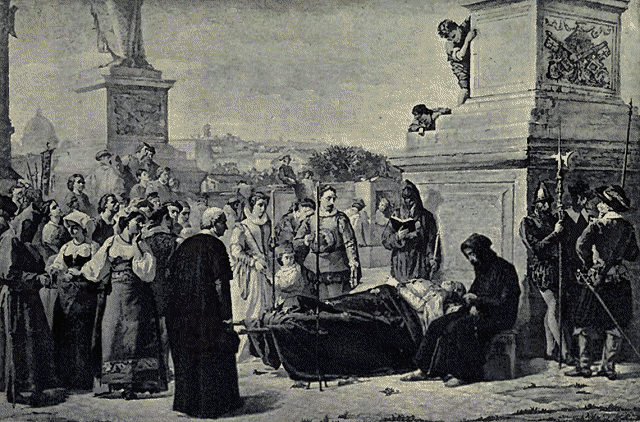 In the meantime, Naples, in the hands of the invaders, had been stained with blood, and then ravaged by the great plague of which Boccaccio has given us a picture, and of the idyllic way the rich people passed their time, in his Decameron.