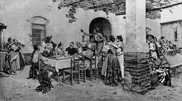 These centuries of feudal rule had, perhaps, given the people of Naples a somewhat different temper from that possessed by the people in other parts of Italy. There had been a firm centre of authority, and, in spite of the troubles which had rent the kingdom, the people in the main had been little concerned with them. They had been taught to obey, and generally their rights had been respected. Now, under King Robert, the populace was enjoying one long holiday, the like of which could have been seen in no other part of Italy at that time. The natural languor of the climate and their intuitive appreciation of the lazy man's proverb, Dolce far niente, made it easy for them to give themselves up to the pleasures of the moment. All was splendor and feasting at the court, and the castle Nuovo, where the king resided, was ever filled with a goodly company. So the people took life easily; there was much dancing and playing of guitars upon the Mole, by the side of the waters of that glorious bay all shimmering in the moonlight, and the night was filled with music and laughter. The beauty of the women was exceptional, and the blood of the men was hot; passion was ill restrained, and the green-eyed monster of jealousy hovered over all. Quick to love and quick to anger, resentful in the extreme, suspicious and often treacherous, Dan Cupid wrought havoc among them at times most innocently, and many a colpo di coltello [dagger thrust] was given under the influence of love's frenzy. But the dance continued, the dresses were still of the gayest colors, the bursts of laughter were unsubdued.