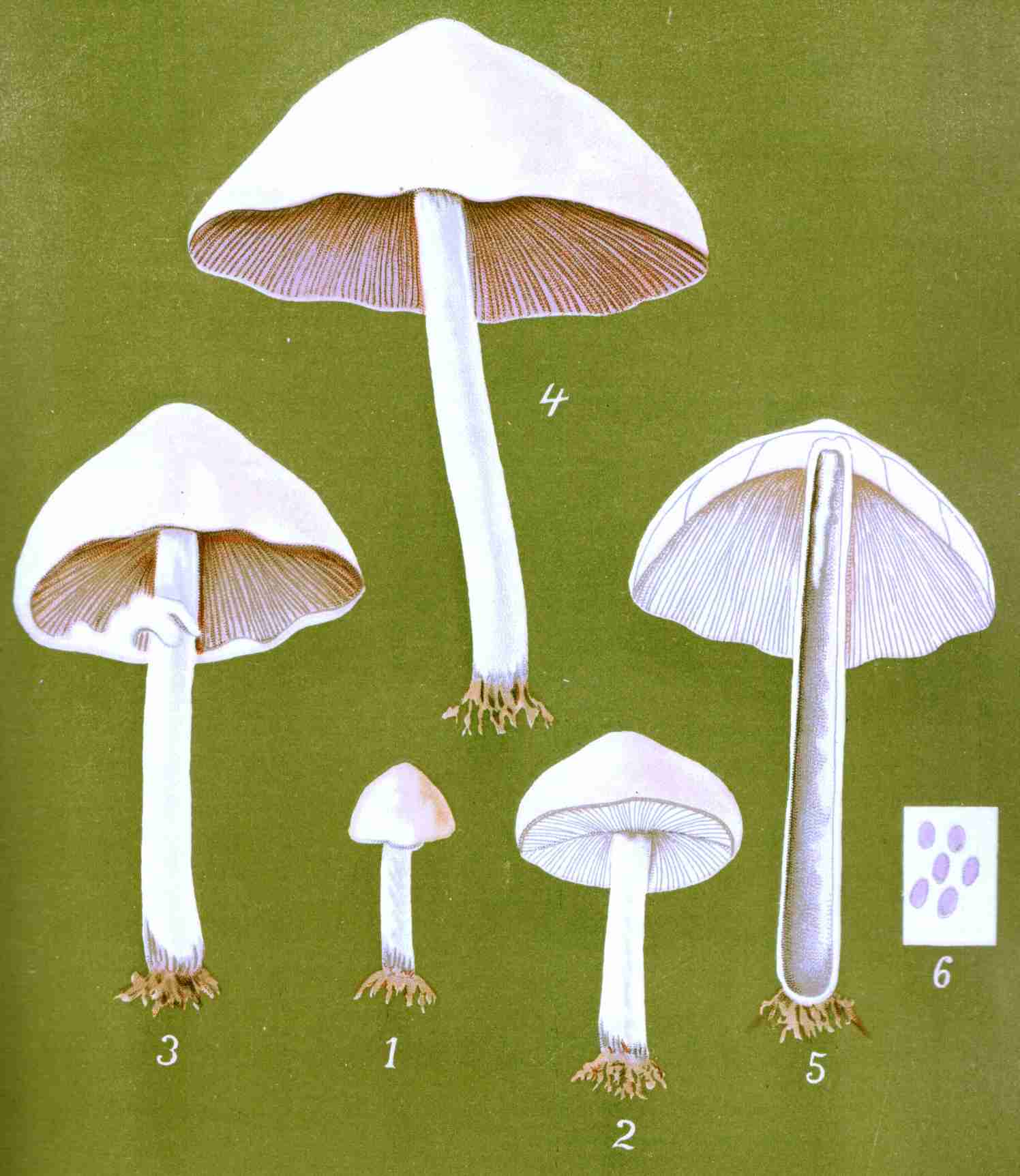 Systematists have divided the Agaricini into groups according to the color of their spores. These groups are defined as follows by various authors:
