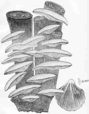 By far the greater number of the Agaricini have both cap and stem. The form of the cap, as well as that of the stem, varies somewhat in the different genera and species. Those which are terrestrial in habit are generally of an umbrella-like shape, while those which grow upon trees and decayed tree-stumps are apt to be one-sided or semi-spherical.