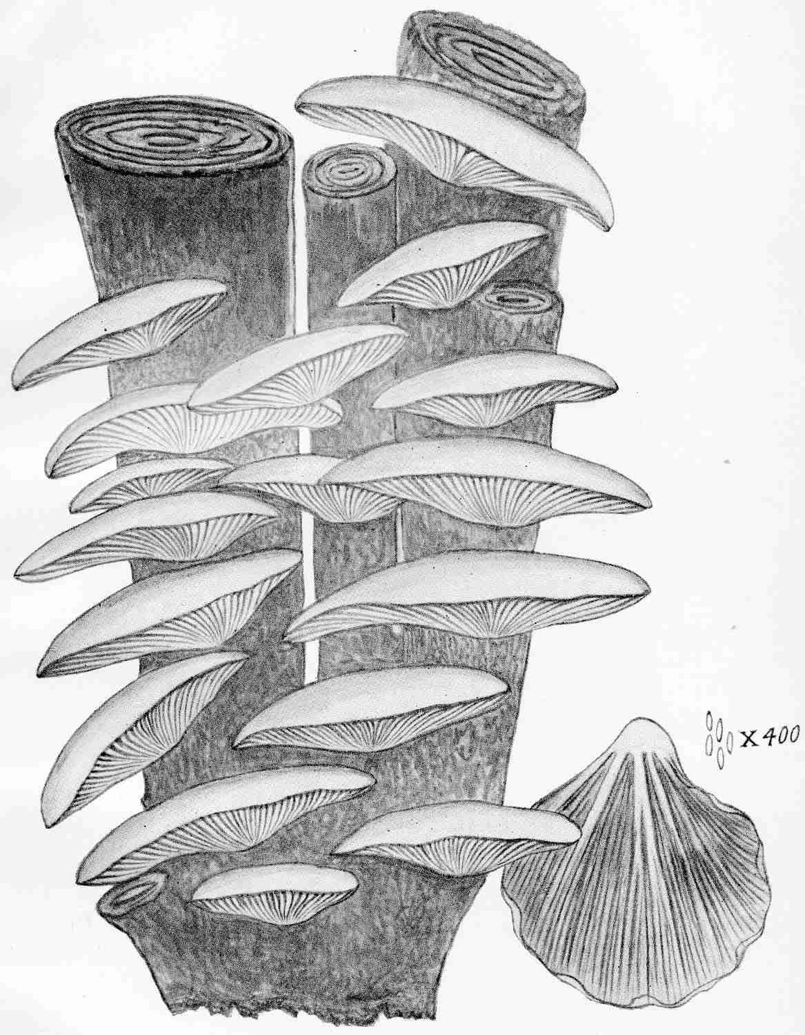 The spore is the reproductive organ of the mushroom. It differs from the seed of the flowering plant in being destitute of an apparent embryo. A seed contains a plantlet which develops as such. A spore is a minute cell containing a nucleus or living germ, the reproductive cell germ called by some authors the germinating granule. This in turn throws out a highly elongated process consisting of a series of thread-like cells branching longitudinally and laterally, at length bifurcating and anastomosing the mass, forming the vegetative process known as mycelium or mushroom spawn.