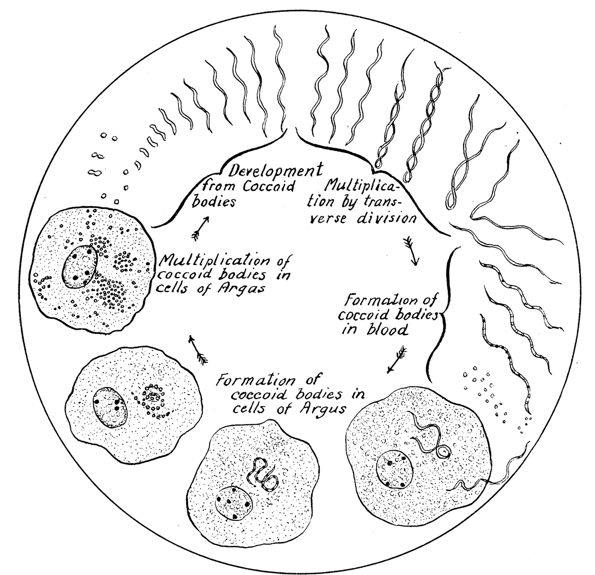 They wish to express indebtedness to the authors and publishers who have so willingly given permission to use certain illustrations. Especially is this acknowledgment due to Professor John Henry Comstock, Dr. L. O. Howard, Dr. Graham-Smith, and Professor G. H. T. Nuttall. Professor Comstock not only authorized the use of departmental negatives by the late Professor M. V. Slingerland (credited as M. V. S.), but generously put at their disposal the illustrations from the Manual for the Study of Insects and from the Spider Book. Figures 5 and 111 are from Peter's "Der Arzt und die Heilkunft in der deutschen Vergangenheit." It should be noted that on examining the original, it is found that Gottfried's figure relates to an event antedating the typical epidemic of dancing mania.