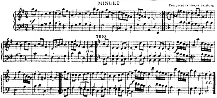[Pg 12] While he wrote many very great pieces of music, here is something he composed when he was five years old. He made up the pieces at the piano and his father wrote them down note for note in a little copy book.