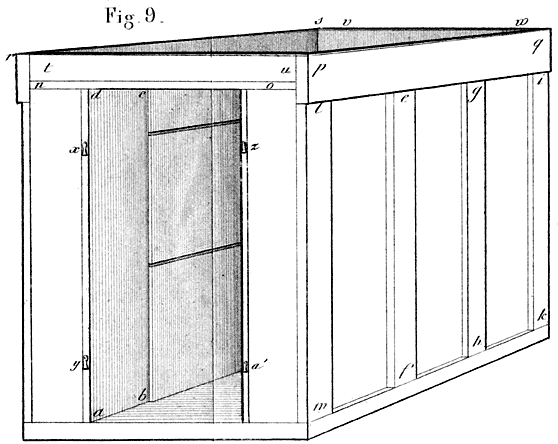 Bij het gebruik van Dzierzon’sche woningen kan de stal gemist worden, bl. 105. Inrigting der bijenstallen, bl. 106. Het plaatsen van den stal, bl. 109.