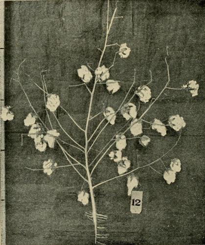 Plants of this structure fruit early, rapidly and are well adapted to boll weevil conditions.