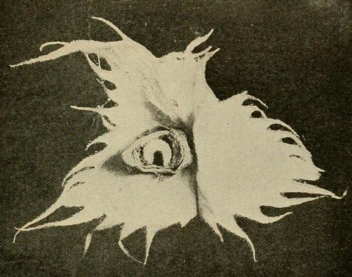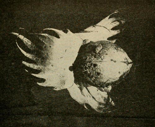 The only reason why the weevils cannot be eradicated by thoroughly picking them off, is that large numbers of over-wintered weevils do not emerge until after the squares begin to form. As soon as the squares form, the weevil gets on the inside of the bracts and feeds only by inserting its beak deep into the squares. After the squares begin to form, it is hardly practicable to pick the weevils off.