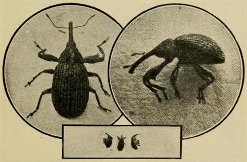 3. When the weevils appear on the new cotton in the spring, pick them off and destroy them.