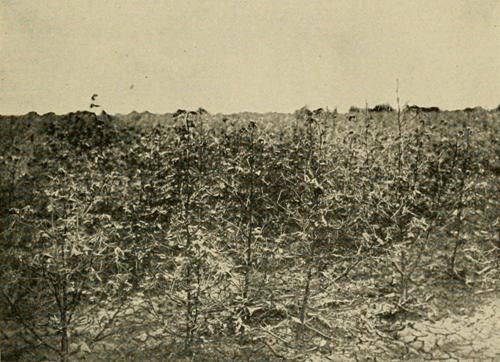 The boll weevil prevented the above late cotton from making a single boll.