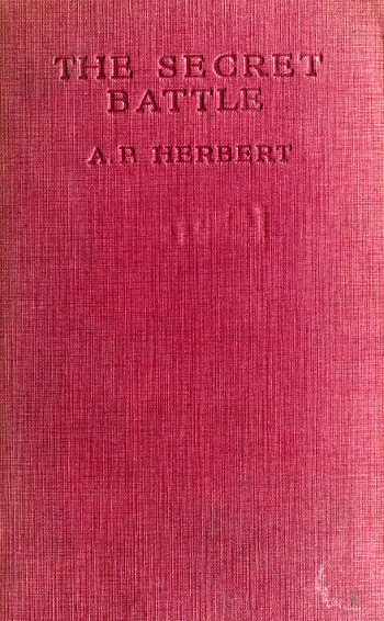 The Project Gutenberg EBook of The Secret Battle, by A. P. Herbert This eBook is for the use of anyone anywhere at no cost and with almost no restrictions whatsoever. You may copy it, give it away or re-use it under the terms of the Project Gutenberg License included with this eBook or online at www.gutenberg.org Title: The Secret Battle Author: A. P. Herbert Release Date: February 4, 2011 [EBook #35164] Language: English Character set encoding: ISO-8859-1 *** START OF THIS PROJECT GUTENBERG EBOOK THE SECRET BATTLE *** Produced by Suzanne Shell, Mary Meehan and the Online Distributed Proofreading Team at http://www.pgdp.net (This file was produced from images generously made available by The Internet Archive/American Libraries.)