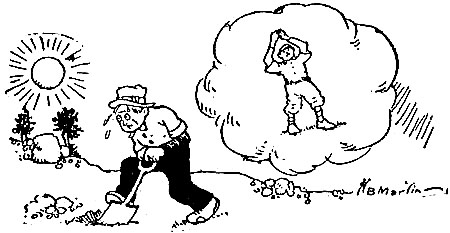 | A pitcher known in the days gone by As a star of the first degree Was making the dirt and gravel fly In the shade of an old oak tree. His spade was long and his arm was strong, And the ditch that he dug was wide; He paused at the sound of the dinner gong— And this is the sermon he sighed: “Young man, you are climbing the ladder now— Your arm is as firm as steel; The wreath of laurel is on your brow And the pride of a prince you feel. Do you think you will play when your hair turns gray? I thought my prowess would last, But you can’t strike out the men of to-day With the curves you threw in the past!” [Pg 20] In the merciless baseball game of life We may shine for a fleeting hour, But the strongest frame comes to shun the strife And loses its youthful power. So strive to lay, while it comes your way, A fence for Adversity’s blast. You can’t strike out the men of to-day With the curves you threw in the past. |