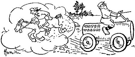 | Listen, dear rooters, and you shall hear Of the ride of a modern Paul Revere. The Paul Revere of “seventy-five” Rode like a fiend and won in a drive. The Paul Revere whose praises I sing Is Arthur Raymond, the spitball king. No plunging charger, no Arab steed, Loans to Raymond its wondrous speed, No dainty thoroughbred, sleek of side, Plays a part in our Raymond’s ride. Just a lumbering wagon, creaking and shaking Serves for the wonderful ride he’s taking. And it hustles him over hollow and hill, Drawn by a good old horse named WILL. [Pg 24] It bumps like blazes and swerves like sin When it nears a bar or passes an inn; It jerks like the tail of a crazy kite When a brewery looms on the left or right. When it nears The Coop or The Rooters’ Rest It bucks as a mustang bucks out West. But, calmly refusing to get a jag on, Raymond clings to that water wagon. * * * To Revere’s great feat you may point with pride, But Raymond is riding a greater ride.[1] |