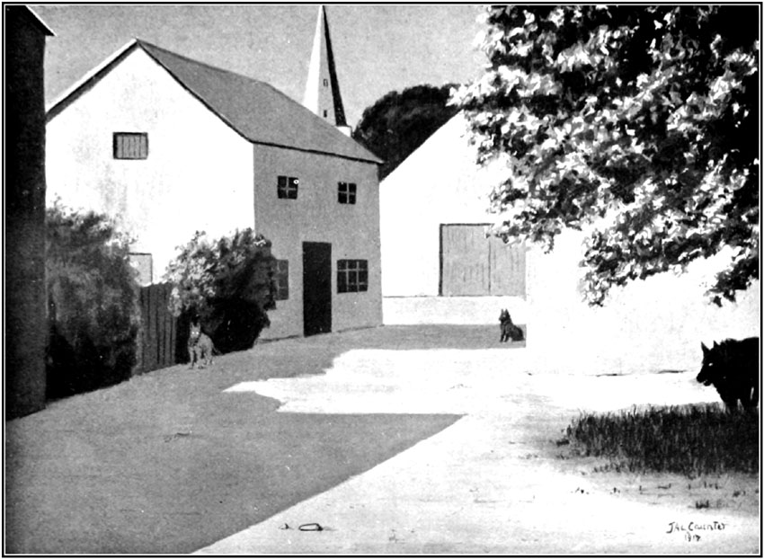 There was a gravel parade square in the middle of the ground between the buildings; this we used as a place for exercise. This square was a hundred and forty yards long by about eighty yards wide. It made an [7]excellent association football ground when cleared of big stones, and in the summer, by dint of hard labour, we turned it into a number of tennis courts.