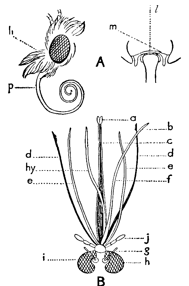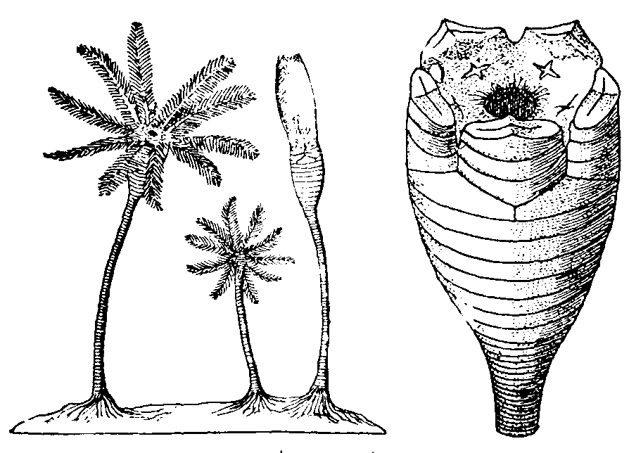 Echinus (e-kī´nus), Sea-urchin, or Sea-egg, a genus of marine animals, the type of an order (Echinoidea) of the phylum Echinodermata (see above). In this type the body is spheroidal and invested in a test or shell composed of regularly arranged plates closely united together. It is covered with movable spines articulated by ball-and-socket joints. The mouth is situated in the centre of the under surface, and there is a complicated masticatory apparatus (Aristotle's lantern) consisting of five chisel-ended teeth [150]supported by an elaborate framework. The anus is similarly placed on the upper side, and is surrounded by a circlet of ten plates (apical disc), one of which bears a furrowed tubercle (madreporite) perforated by small holes through which water enters the water-vascular system. Locomotion is effected by meridional rows of tube-feet, aided by the spines. E. esculentus and some other species are edible. See Sea-urchin.