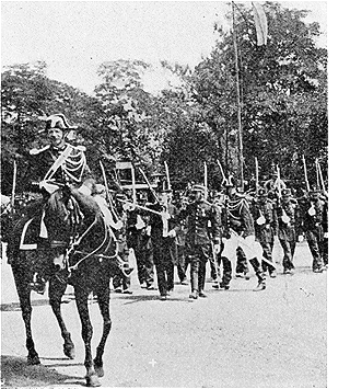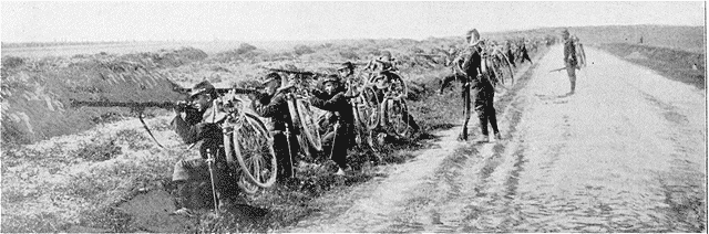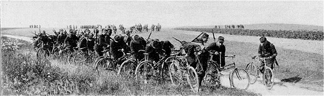 Le bataillon cycliste en ligne déployée.