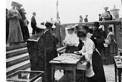 Marins anglais achetant des cartes postales à