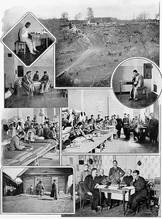 Les Japonais valides emmenés en Russie sont pour la plupart au village de Medwied, dans le gouvernement de Nijni-Novgorod; les malades et les blessés ont été soignés à l'hôpital militaire de Moscou. Aux uns comme aux autres on a laissé toute la liberté compatible avec les règlements militaires.