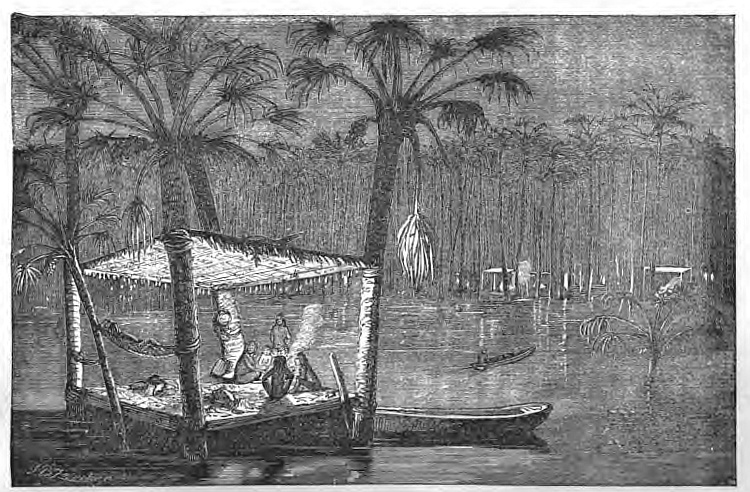 It is not necessary to say that the great forest of the Amazon is a tropical one—since the river itself, throughout its whole course, almost traces the line of the equator. Its vegetation, therefore, is emphatically of a tropical character; and in this respect it differs essentially from that of North America, or rather, we should say, of Canada and the United States. It is necessary to make this limitation, because the forests of the tropical parts of North America, including the West-Indian islands, present a great similitude to that of the Amazon. It is not only in the genera and species of trees that the sylva of the temperate zone differs from that of the torrid; but there is a very remarkable difference in the distribution of these genera and species. In a great forest of the north, it is not uncommon to find a large tract covered with a single species of trees,—as with pines, oaks, poplars, or the red cedar (Juniperus Virginiana). This arrangement is rather the rule than the exception; whereas, in the tropical forest, the rule is reversed, except in the case of two or three species of palms (Mauritia and Euterpe), which sometimes exclusively cover large tracts of surface. Of other trees, it is rare to find even a clump or grove standing together—often only two or three trees, and still more frequently, a single individual is observed, separated from those of its own kind by hundreds of others, all differing in order, genus, and species. I note this peculiarity of the tropic forest, because it exercises, as may easily be imagined, a direct influence upon the economy of its human occupants—whether these be savage or civilised. Even the habits of the lower animals—beasts and birds—are subject to a similar influence.