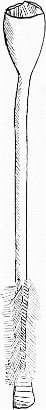 The men wear, instead of the above, a kind of bag, hanging down exactly in front. This is divided internally into two pockets, containing their tobacco-pipe, tinder-box, tobacco, and a spoon made of reindeer's horn, of an oblong flattish shape.