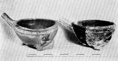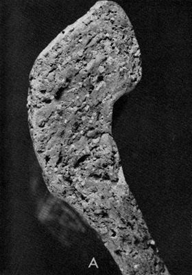 | Figure 6.—Gravel-tempered oven of the 17th or early 18th century, acquired in Bideford. (USNM 394505.) | Figure 7.—Gravel-tempered oven from 17th-century house on Bideford Quay. Borough of Bideford Public Library and Museum. (Photo by A. C. Littlejohns.) |