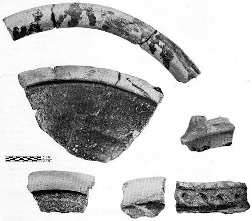 Since these opinions were expressed, much further archeological work in colonial sites has revealed widespread distribution of the two types. Bailey himself noted that a pottery oven is intact and in place in the John Bowne House in Flushing, Long Island. A fragment of another pottery oven recently has been identified among the artifacts excavated by Sidney Strickland from the site of the John Howland House, near Plymouth, Massachusetts; and gravel-tempered utensil sherds have occurred in many sites. The sgraffito ware has been unearthed in Virginia, Maryland, and Massachusetts.