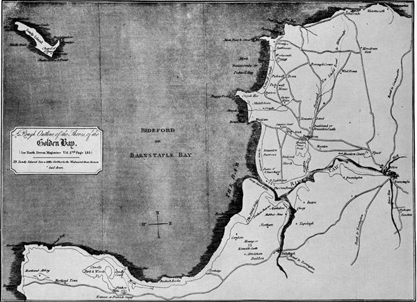 Figure 3.—Map of the area around Bideford and Barnstaple. Reproduced from J. B. Gribble, Memorials of Barnstaple, 1830.