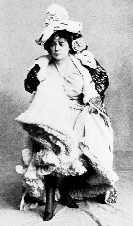 "In 'The Fortune Teller' the astonishing Harry B. Smith, who must have gone about all summer perspiring librettos and dripping them into the laps of all the stars, has woven a rôle for Miss Nielsen that is stellar but difficult to comprehend. Miss Nielsen appeared as three people who are always changing their clothes. Just as the poor little woman has got through all her vocal exercises as Irma, Mr. Smith insists that she shall be Musette in other garbs. And no sooner has she appeared as Musette and sang something else than Mr. Smith rushes her off and claps her into another garb as Fedor. You[8] don't know who she intends to be from one minute to another, and I am quite sure that she herself doesn't. The variety of dresses, tights, wraps, jackets, and hats sported by this ambitious and earnest little girl is simply astonishing. It must be very difficult to accomplish these chameleon-like changes without getting rattled. Miss Nielsen seemed to enjoy herself, however; and as for getting rattled, she coquetted with her audience as archly after the twelfth change as she did after the first."