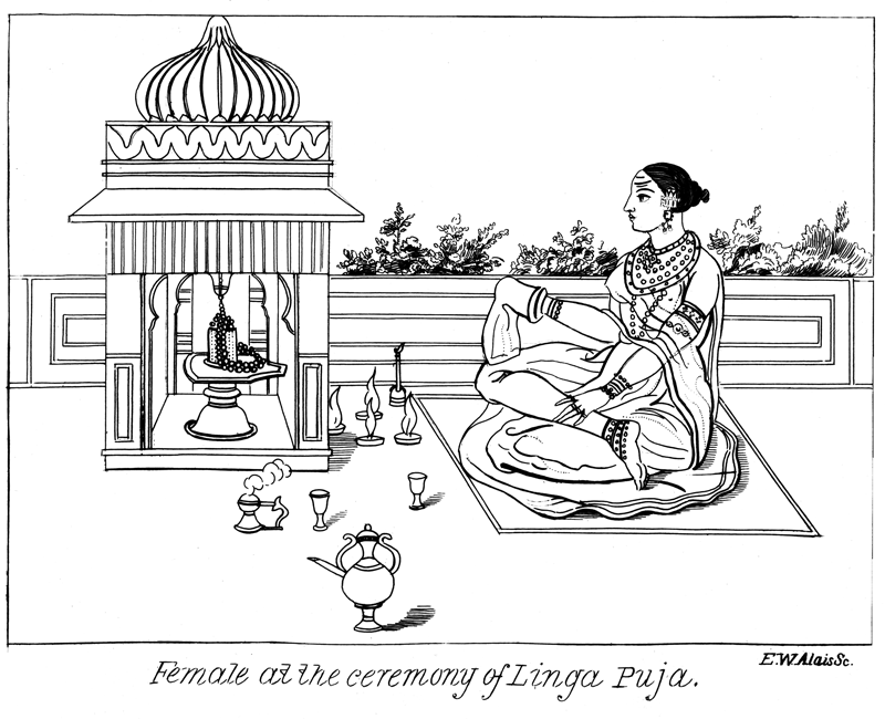 Some persons build near the temples of the linga, a small house, open in front, for the accommodation of such persons who wish to die in sight of the river; and others build a temple, adjoining to that built for the linga, and dedicate it some other idol.
