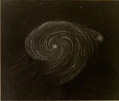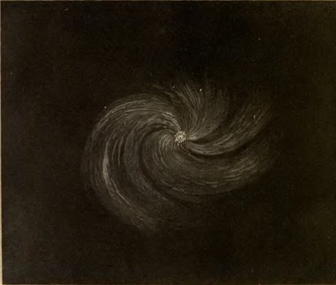 7. Even yet we have not finished the series of successive views which astronomers have had opened to them, extending more and more their spectacle of the fulness and largeness of the universe. Not only does the telescope disclose myriads of stars, unseen to the naked eye, and new myriads with each increase of the powers of the instrument; but it discloses also patches of light, which, at first at least, do not appear to consist of stars: Nebulę, as they are called; bright specks, it might seem, of stellar matter, thin, diffused, and irregular; not gathered into regular and definite forms, such as we may suppose the stars to be. Every one who has noticed the starry skies, may understand what is the general aspect of such nebulę, by looking at the milky way or galaxy, an irregular band of nebulous light, which runs quite round the sky; "A circling zone, powdered with stars;" as Milton calls it. But the nebulę of which I more especially speak, are minute patches, discovered mainly by the telescope, and in a few instances only discernible by the naked eye. And what I have to remark especially concerning them at present is, that though to visual powers which barely suffice to discern them, they appear like mere bright clouds, patches of diffused starry matter; yet that, when examined by visual powers of a higher order, by more penetrating telescopes, these patches of continuous feeble light are, in many instances at least, distinguishable into definite points: they are found, in fact, to be aggregations of stars; which before appeared as diffused light, only because our telescopes, though strong enough to reveal to our senses the aggregate mass of light of the cluster, were [Pg 27]not strong enough to enable us to discern any one of the stars of which the cluster consists. The galaxy, in this way, may, in almost every part, be resolved into separate stars; and thus, the multitude of the stars in the region of the sky occupied by that winding stream of light, is, when examined by a powerful telescope, inconceivably numerous.