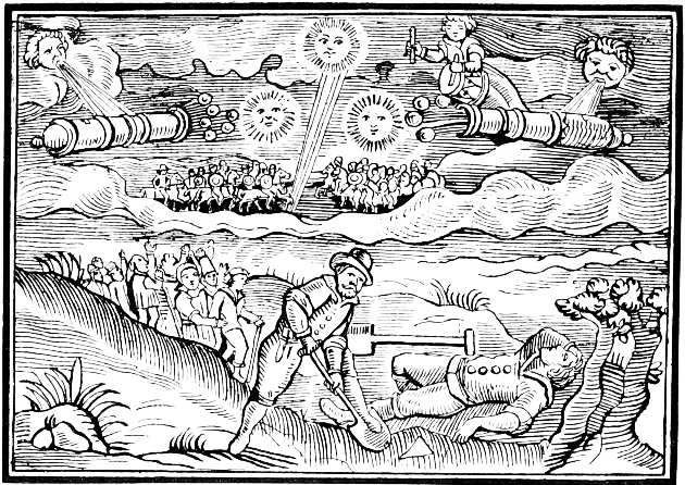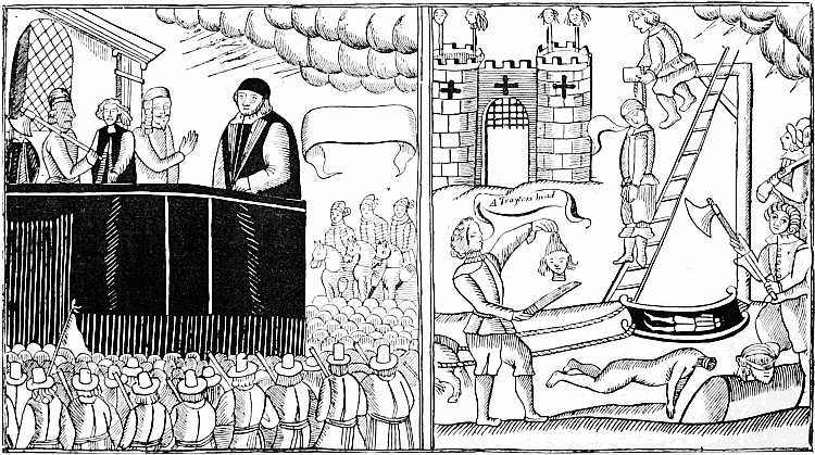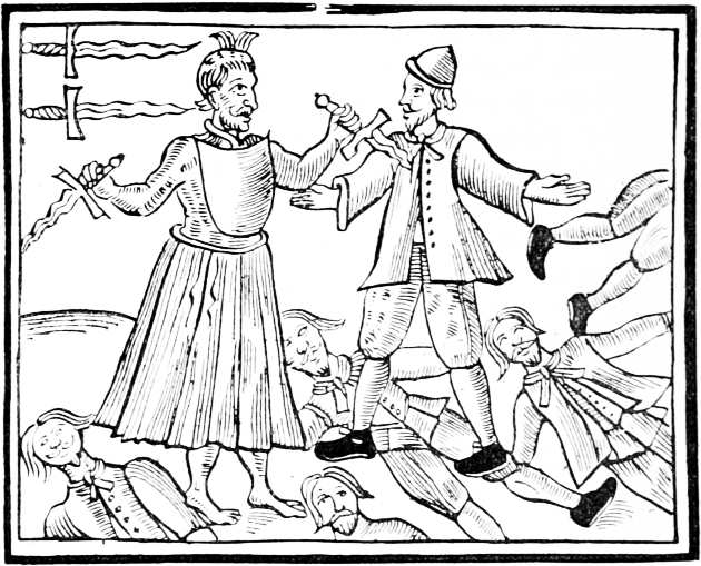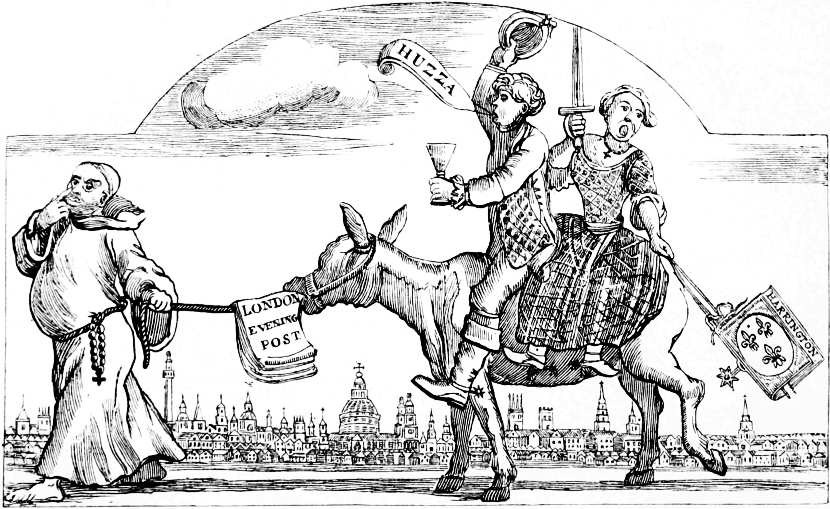 Illustrated Broadsides—Sir Francis Drake’s Operations against the Spaniards—Papers of News in the Reign of James I.—The first Periodical Newspaper published in England—Illustrated Tracts relating to Storms and Floods—Remarkable Murders favourite subjects with the early Newswriters—Murder of the Rev. Mr. Storre—Murder in Cornwall—Apparition of Three Skeletons—Visions in the Air—Attempt on the Life of the Duke of Buckingham—Fall of Meteors at Bawlkin Green, Berkshire—The Swedish Intelligencer—Passage of the River Leck by Gustavus Adolphus—The Sallee Rovers—The Weekly News of 1638, an Illustrated Paper—The Irish Rebellion of 1641—The Plague in London—Murder on board an English Ship—The Earl of Strafford—His Execution on Tower Hill—Archbishop Laud—A Burlesque Play about him—Attack by the Mob on Lambeth Palace—Caricature of the Devil offering Laud a Cardinal’s Hat.