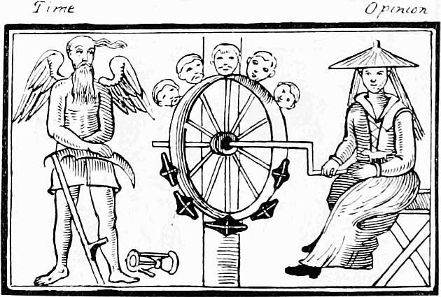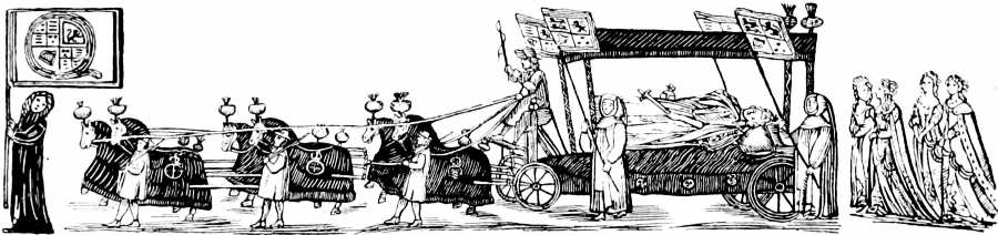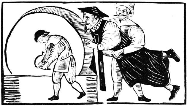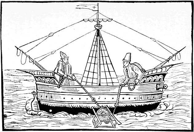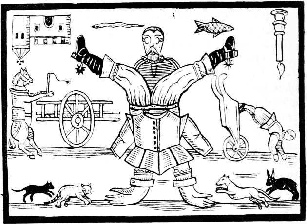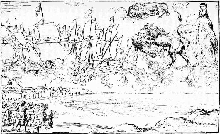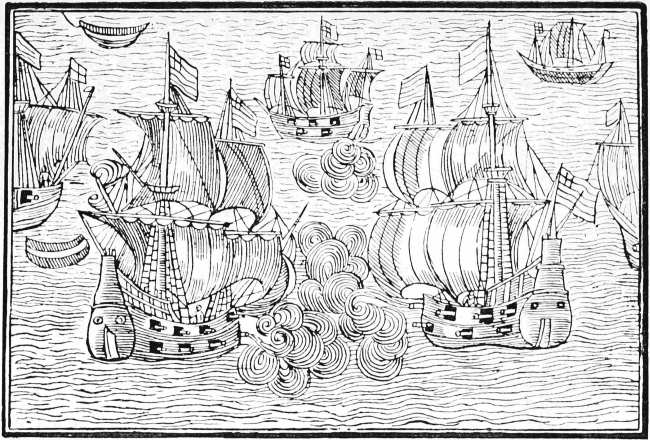 Before, and for a long time after, the general use of newspapers, illustrated broadsides were published relating to particular events, or satirising the vices and follies of the period. In a broadside adorned with a woodcut representing Death and Time, and entitled, The Doleful Dance, and Song of Death, allusion is made to the ‘Fatal Assizes’ of Oxford, when three hundred persons, including the High Sheriff, died of a distemper, which was supposed to have originated among the prisoners. A sheet of a later date refers to the Spanish Armada and the Gunpowder Plot; while a third, entitled, Tittle-Tattle, &c., satirises the gossiping habits of the fair sex, and contains many illustrations of manners, costume, and character. Such were the publications that did duty for newspapers in the days of Queen Elizabeth, whose subjects, however, were not left wholly without information as to passing events. In 1587 there was published an illustrated tract giving an account of the doings of Sir Francis Drake, 9 who was employed by Queen Elizabeth to harass the Spaniards in their harbours, and hinder them in their preparations for invading England. These operations, which Drake himself described as ‘singeing the King of Spain’s beard,’ delayed the sailing of the Armada, and gave Elizabeth time to prepare for defence. The tract referred to is entitled, ‘The true and perfect Newes of the worthy and valiant exploytes performed and done by that valiant Knight Syr Frauncis Drake; Not only at Sancto Domingo, and Carthagena, but also nowe at Cales, and upon the Coast of Spayne, 1587. Printed at London, by J. Charlewood, for Thomas Hackett.’ There is an account, in verse, written by one Thomas Greepe, of the doings of Sir Francis Drake and other sea captains. The author tells his reader, ‘Here hast thou, gentle Reader, set forth unto thee the most worthy and valiant exploytes and enterpryses, lately atchieved and done by that valiant Knight Syr Frauncis Drake & others not pend in lofty verse, nor curiously handled, but playnly and truly, so that it may be well understood of the 10 Reader.’ There is no attempt made to illustrate the events related in the tract, but on the title-page there is a woodcut of a ship in full sail, which was perhaps intended to represent the admiral’s own vessel. I have reproduced it on a reduced scale, as an early specimen of marine draughtsmanship.