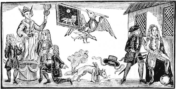| HEADING OF ‘THE JACOBITE’S JOURNAL,’ 1747. (Supposed to be Drawn by Hogarth.) (See page 197.) |