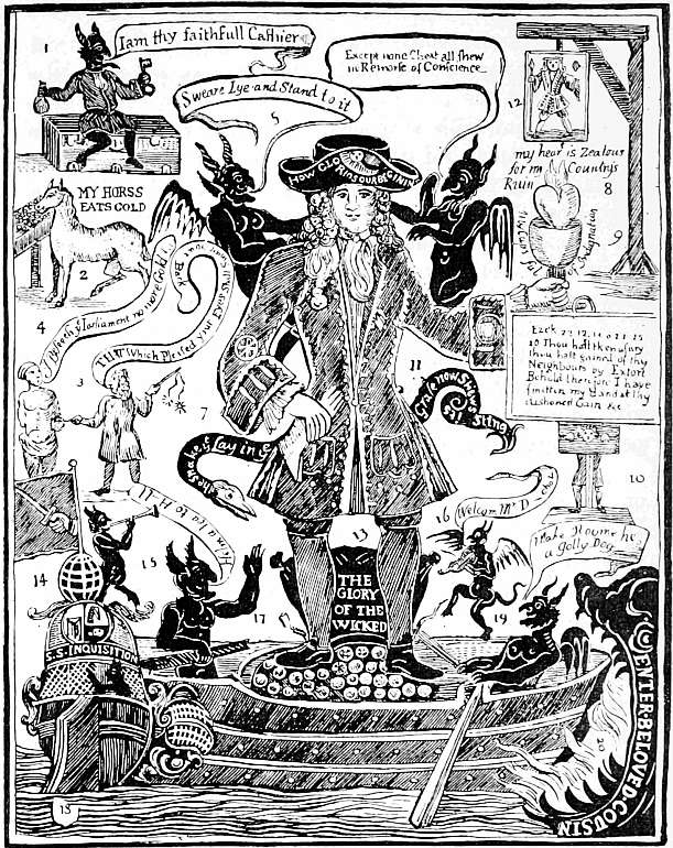 Ben Jonson’s Ridicule of the Early Newspapers—Fondness of the Old News-Writers for the Marvellous—The Smithfield Ghost—The Wonderful Whale—The Newbury Witch—Satirical Tracts and Caricatures at the Commencement of the Civil War—Religion Tossed in a Blanket—Caricatures of the Pope and the Bishops—Pluralists and Patentees—Taylor, the Water Poet—Mercurius Aulicus—Activity of the Pamphleteers—Welshmen Satirised—Satires on Prince Rupert—On the King and Queen—The Ladies’ Parliament—Illustrated Tracts relating to Social and Political Subjects—Sir Kenelm Digby’s Duel—The King entertained by the City of London, 1641—Executions in 1641—The Liquor Traffic and Sunday Closing in 1641—Abuses of the Ecclesiastical Courts—Ritualism and Nunneries in 1641—Truths enforced by Lieing—Stage Players and the Plague in 1641—Bartholomew Fair in 1641—Destruction of Charing Cross and Cheapside Cross—Strange Apparition—Method of enforcing their Views adopted by the Puritan Pamphleteers—Parodies of Roundhead Sermons—Matthew Hopkins the Witch-finder—The Welsh Post of 1643—William Lilly the Astrologer—Three Suns seen in London on the King’s Birthday. | |