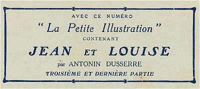 1° LA PETITE ILLUSTRATION. Série-Roman n° 20: Jean et Louise, par M. Antonin Dusserre;