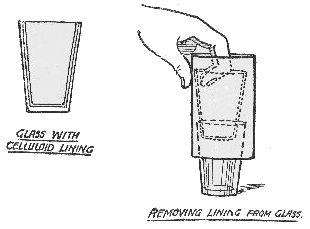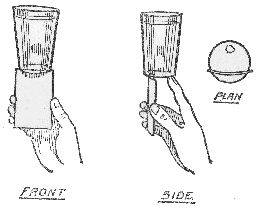 You pretend to be in difficulties and encourage the "knowing ones" in your audience to jeer at you as you try the trick again and again. You explain that there is a way of resting the glass on the paper in such a way that the paper shall not sink down. Some brainy person will then say, "Impossible!"—or it is to be hoped that they will—because that will give you the opportunity of saying: