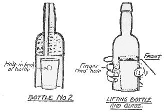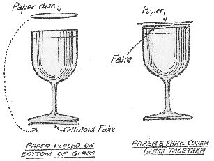 I know of four ways of doing this trick, but we need not take any notice of the first because you are not likely to trouble to learn it; it consists in actually doing what you profess to do—balance the glass. It can be done, but you need a very steady hand and long practice.