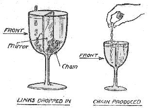 | The Wine and Water Trick (David Devant's method)—The Vanishing Glass of Water—The Vanishing Water—The Aquarius Tube—Links—The Milk Cans—Water from Waste Paper—Cotton Wool to Water—Silk from Water |