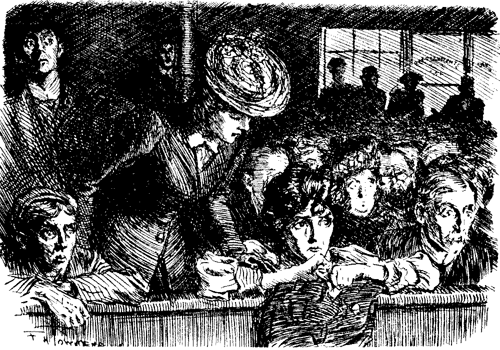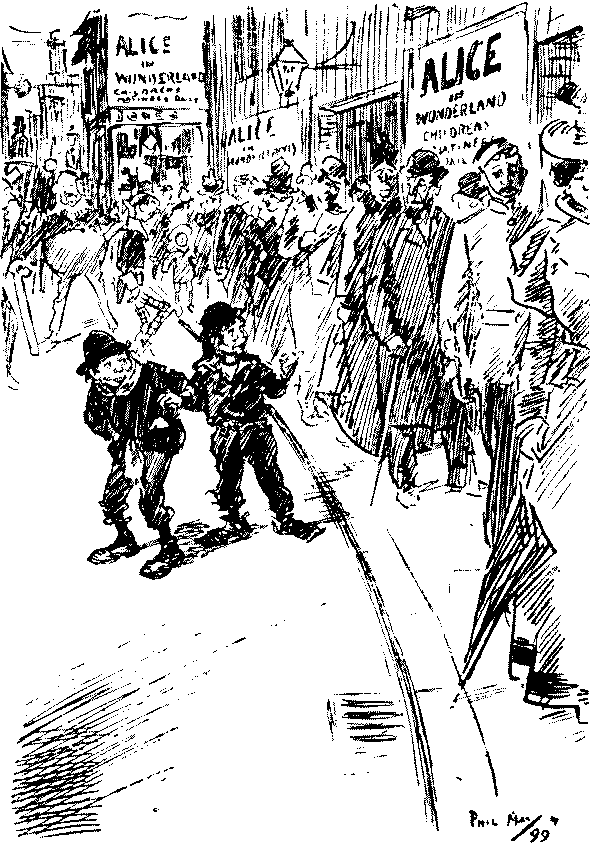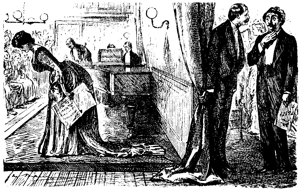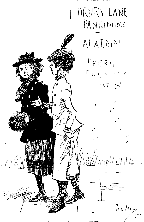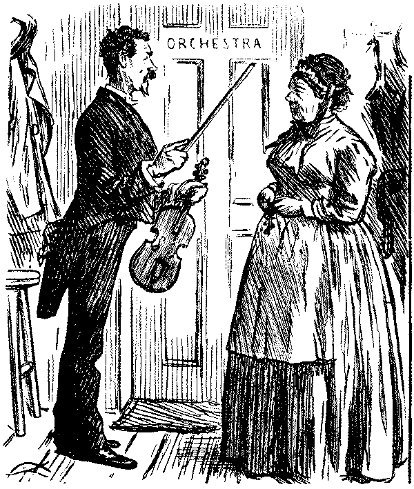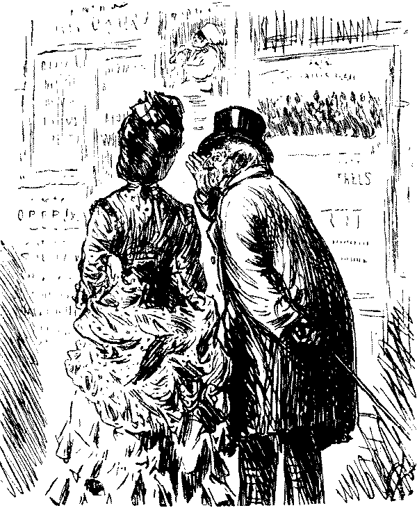 "'Ere, I say, 'Liza, we've seen this 'ere play before!" "No, we ain't." [Wordy argument follows.] "Why, don't you remember, same time as Bill took us to the 'Pig an' Whistle,' an' we 'ad stewed eels for supper?" "Oh lor! Yes, that takes me back to it!"