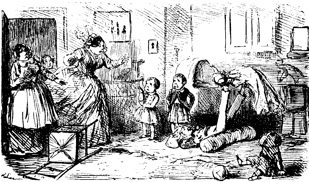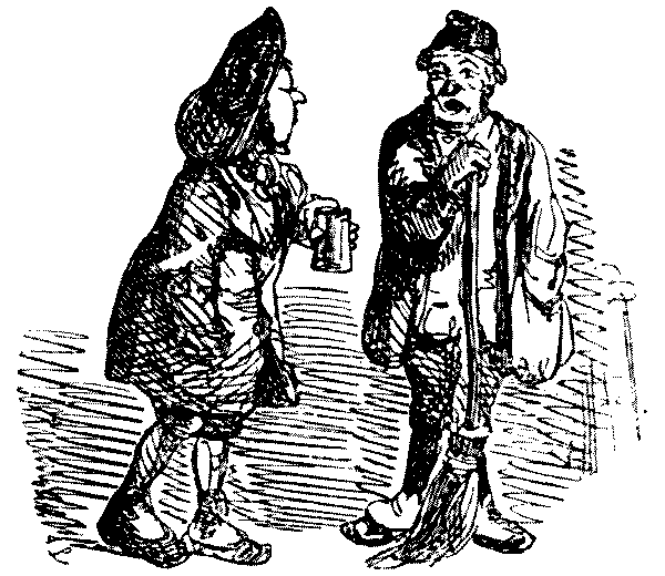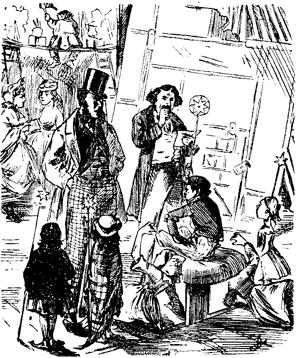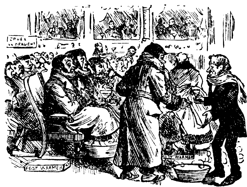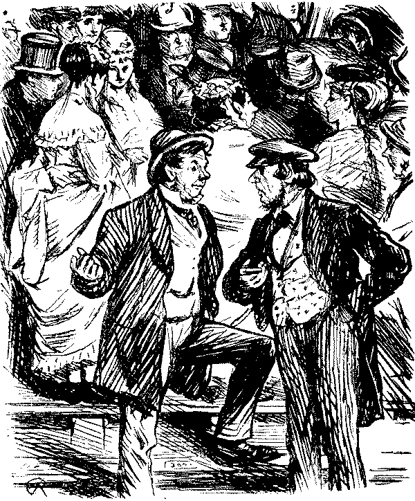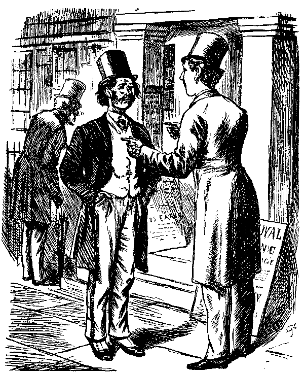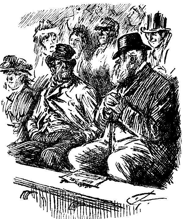 "'Ere, I say, 'Liza, we've seen this 'ere play before!" "No, we ain't." [Wordy argument follows.] "Why, don't you remember, same time as Bill took us to the 'Pig an' Whistle,' an' we 'ad stewed eels for supper?" "Oh lor! Yes, that takes me back to it!"