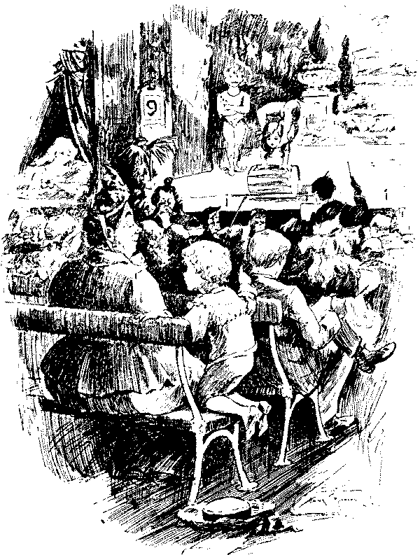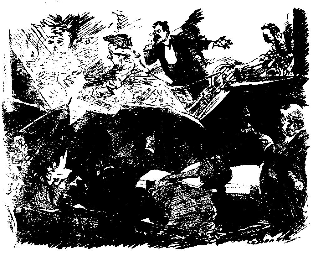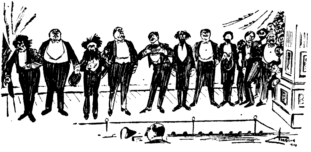 How nice to know that the musicians, though out of sight under the stage, are in evening dress on velvet cushions![Pg 8]