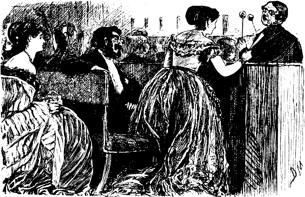 B. P. "During the entr'acte. One of the attendants dropped an ice down her neighbour's neck."