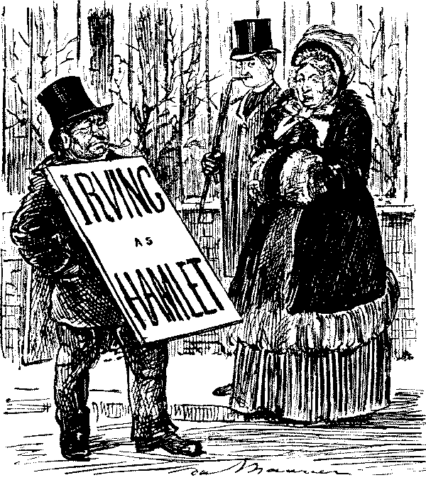 Most of the Punch artists of note have used their pencils on the theatre; with theatricals public and private none has done more than Du Maurier. All have made merry over the extravagances of melodrama and "problem" plays; the vanity and the mistakes of actors, actresses and dramatists; and the blunderings of the average playgoer.
